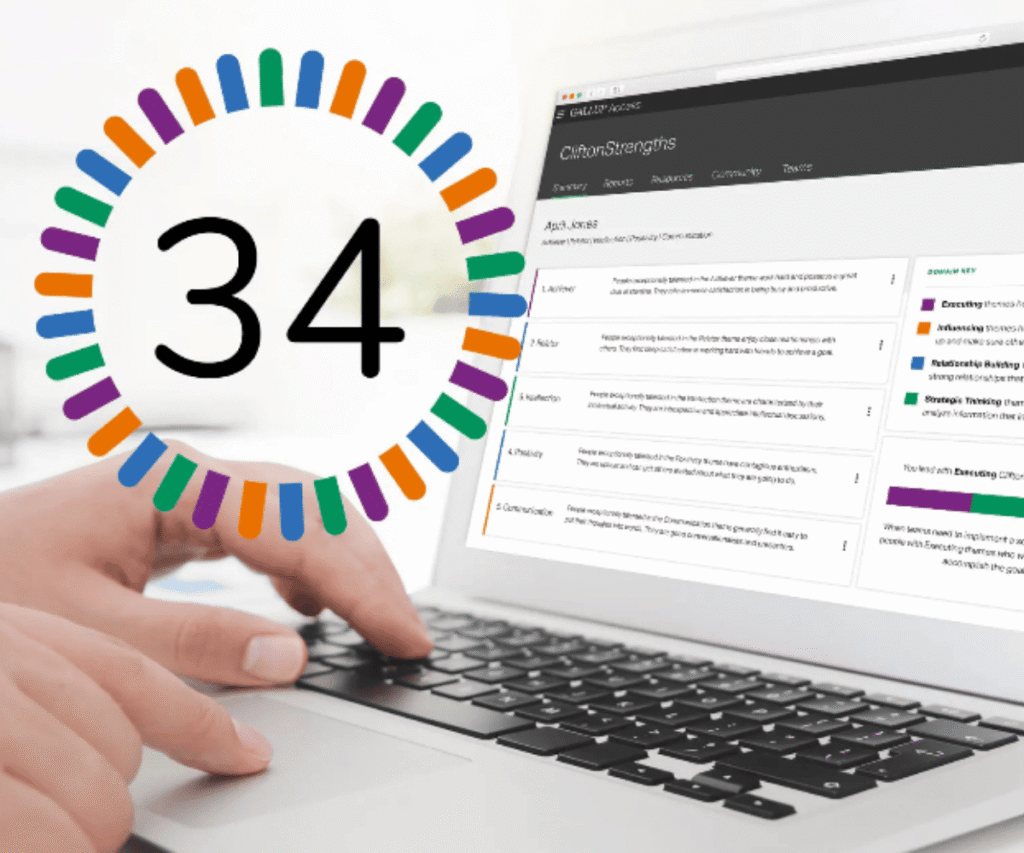CliftonStrengths is a research-backed tool that helps you uncover what you naturally do best. The 30-minute online assessment asks you to respond to 177 statements and maps your answers to 34 unique talent themes.